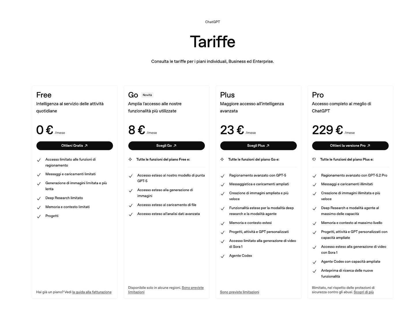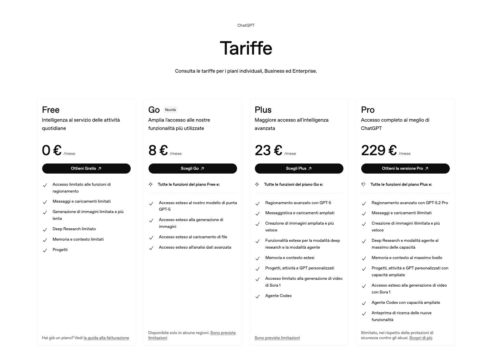 Piani ChatGPT | Free, Plus, Pro, Business ed Enterprise - ChatGPT Pricing Page