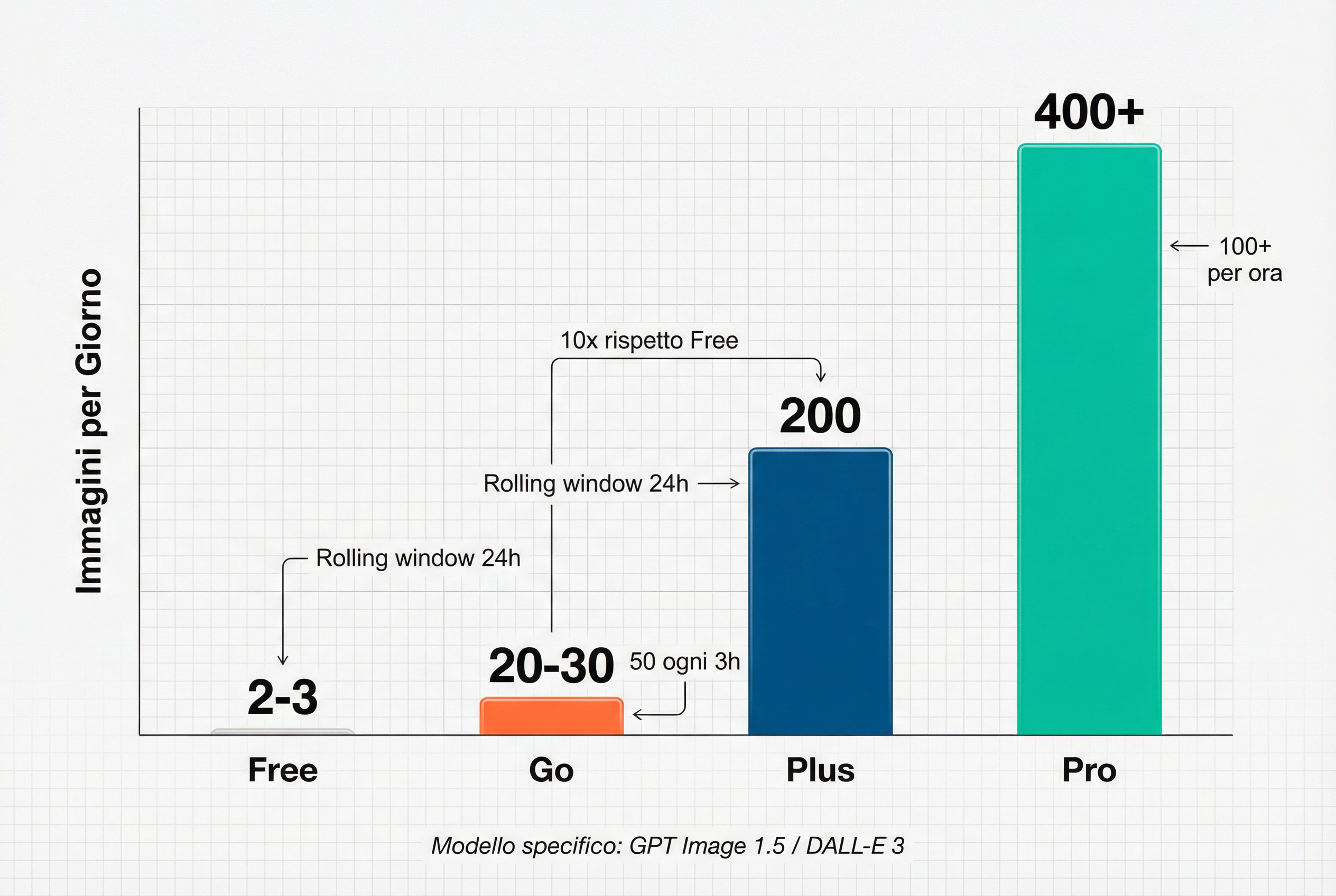 GO: “Extended access” OpenAI non ha specificato esattamente quante immagini, ma fonti indicano circa 10x rispetto al piano Free, quindi presumibilmente 20-30 immagini al giorno. Abbastanza per un uso regolare ma non professionale.